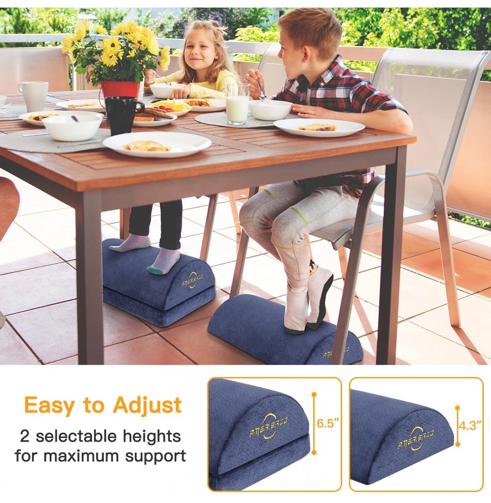 Foot Rest for Under Desk at Work , Ergonomic Memory Foam Foot Stool Cushion for Home Office, Gaming, Computer - Adjustable 2 Heights Under Desk Footrest with Breathable Washable Cover by AMERIERGO